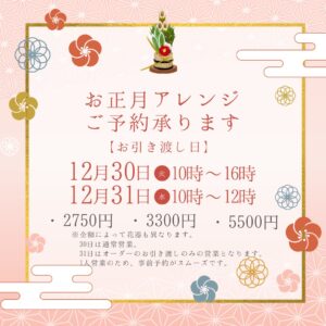 さぁ!!みなさんお待ちかねの、お正月アレンジです📣 「開催はいつですか?」「もう予約できますか?」と、たくさんお問い合わせを頂いていました(*ノωノ) お正月は人気なので、ご予約枠を増やしています♪ …
