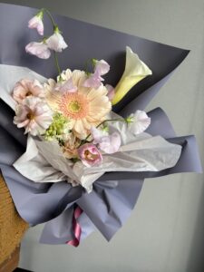 先週の土曜日は、苫花地方卸売市場での出張レッスンがありました🙌 今回のテーマは、韓国風ブーケ💐 韓国風ブーケとは、実ははっきりとした定義はないそうですが、 淡い色合いと茎のぴょんぴょんラインが特徴です…