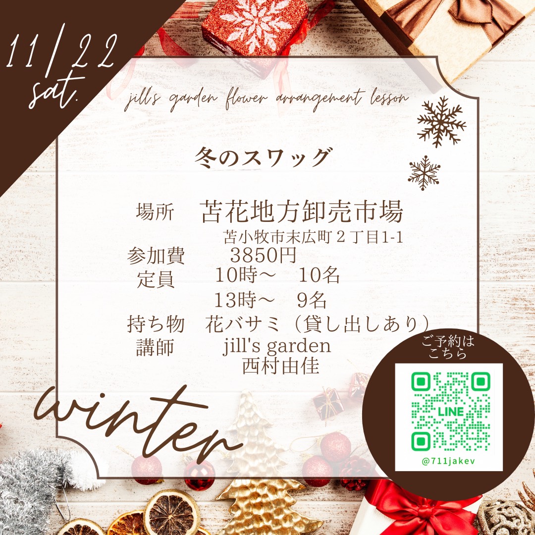 次回苫花レッスンは、冬のスワッグです🙌