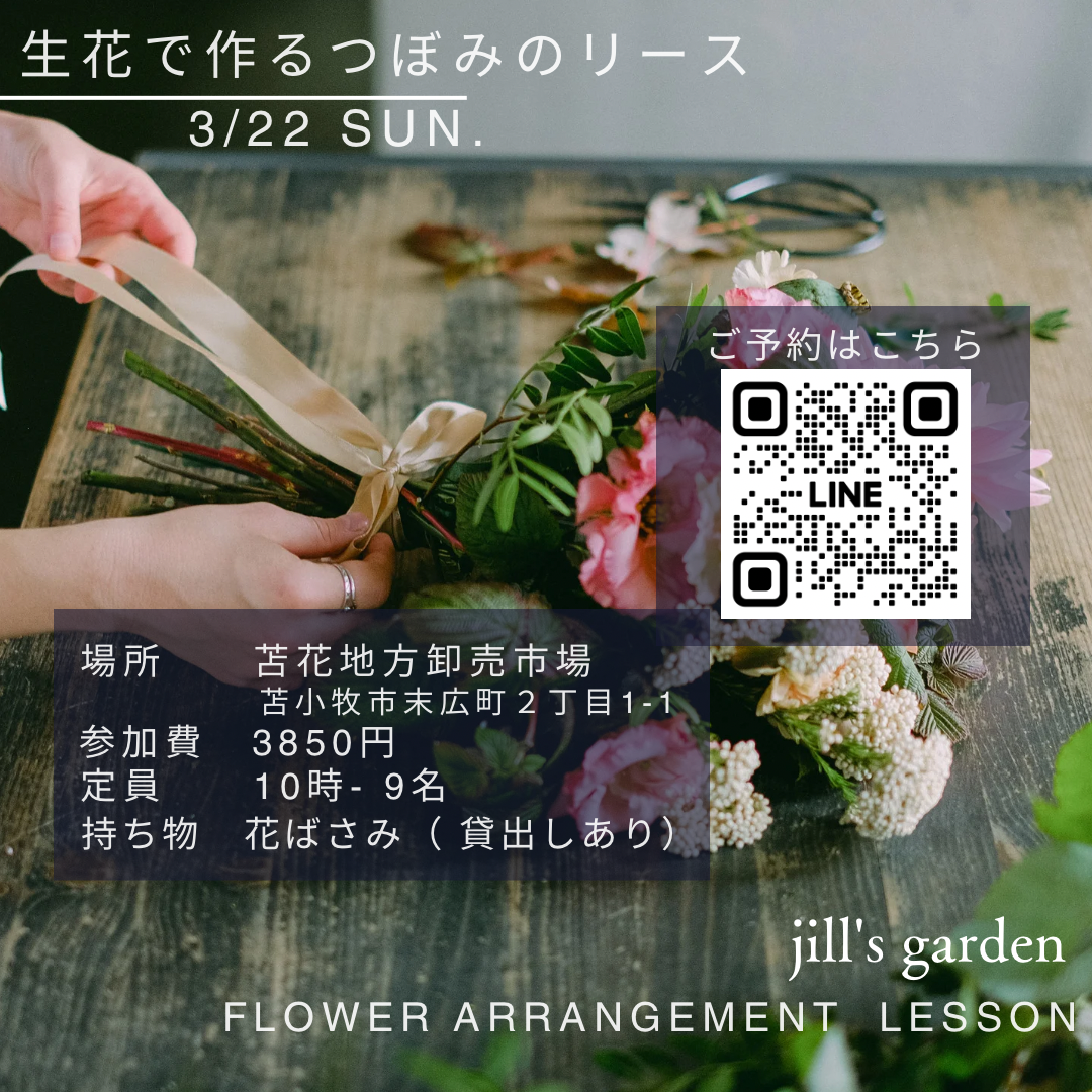つぼみが多い花材を使用して、リースを作り終わった後も、お花が咲いていく様子を見て楽しむことが出来ます( *´艸`)